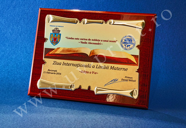 Producem plachete imprimate UV pe suport din lemn lacuit. Prin imprimare UV se obtine o personalizare de efect, in relief, se pot imprima sigle colorate, degradeuri, fotografii. Plachetele printate UV pot fi din aluminiu, metalex. Dimensiunile plachetelor sunt 9x12 cm, 12x16 cm, 15x20 cm, 22x29 cm, placile din lemn cu finisare nuc au 14.5x11, 19x15, 24.5x19.5, 33.5x26 cm, si grosime de 1,2 cm, se pot agata pe perete sau aseza pe masa.